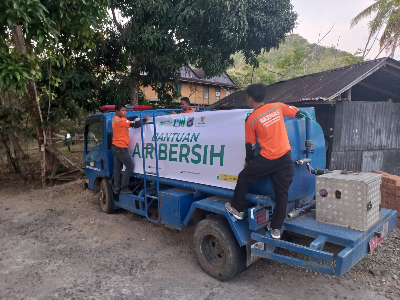 BAZNAS Tanggapa Bencana (BTB) Kabupaten Enrekang kolaborasi Pemda Kab. Enrekang dalam hal ini Dinas Sosial Kab. Enrekang mendistribusikan air bersih di Lingkungan Malawe Kelurahan Tuara Kec. Enrekang untuk memenuhi kebutuhan dasar beberapa warga yang mengalami kesulitan akses air besih pada, Jumat 1 September 2023.