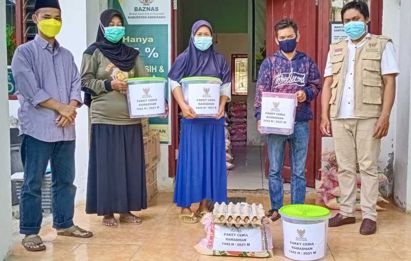 Bulan Ramadan tahun ini, Badan Amil Zakat Nasional (Baznas ) Enrekang membagikan paket Ramadan Ceria ke 150 Petugas Penyapu jalan dan Cleaning servis tiap OPD Lingkup Pemkab.