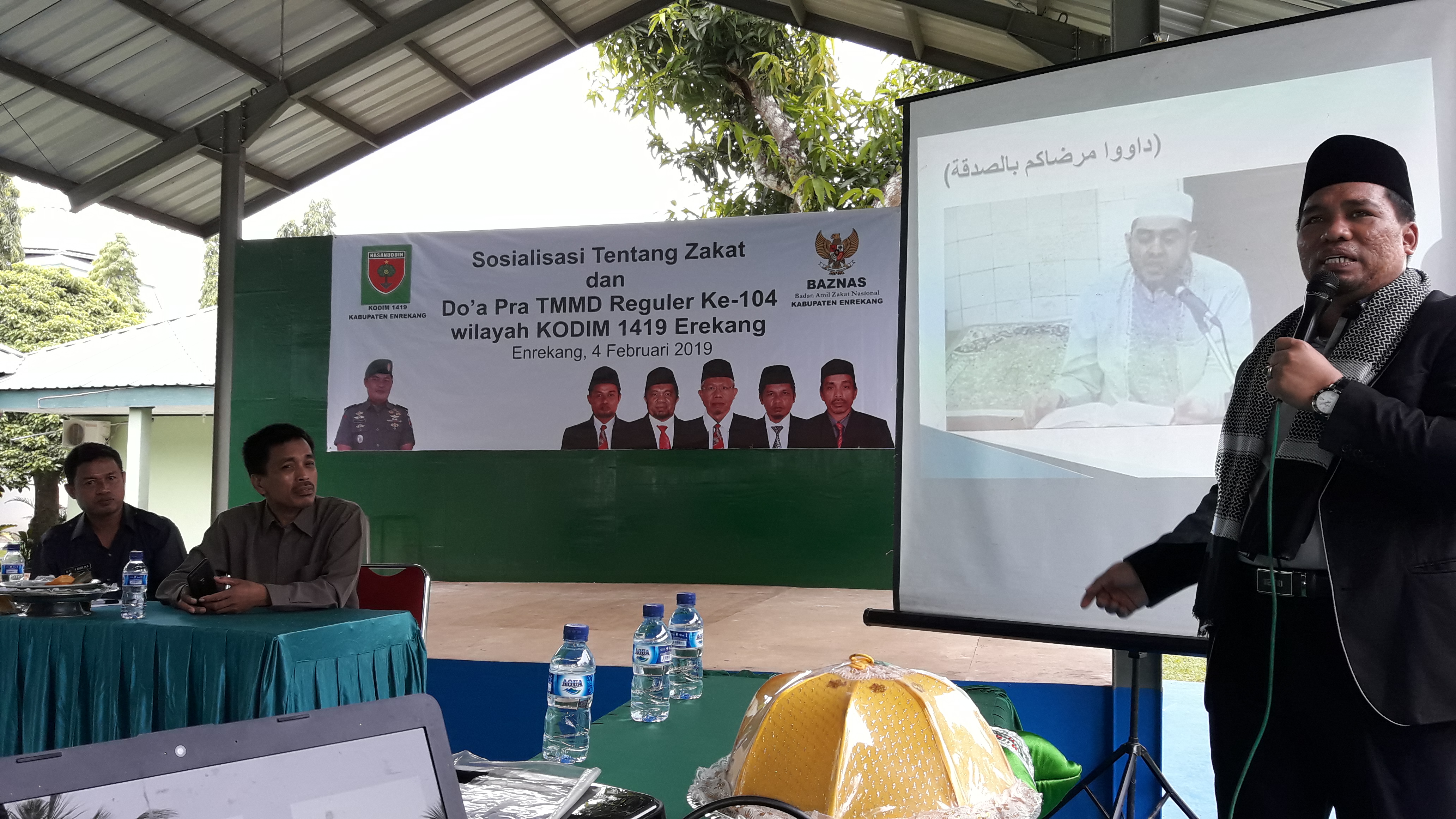 Baznas Enrekang sosialisasi tentang Zakat dan Doa Pra TMMD Reguler Ke-104 Wilayah KODIM 1419 Enrekang. Acara berlangsung di Aula Kodim Enrekang, (4/1/2019).