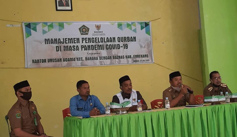 Atas nama Pemerintah Kecamatan Baraka kabupaten Enrekang sangat mengapresiasi apa yg dilakukan oleh Kantor Urusan Agama (KUA) kecamatan Baraka, bekerja sama dengan Baznas Kabupaten Enrekang, untuk mengoptimalkan manajemen pengelolaan qurban, bertempat di Gedung Aula SRADP, Kecamatan Baraka senin 27/07/2020.
