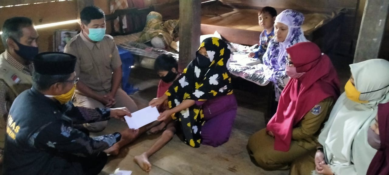 Badan Amil Zakat Nasional (Baznas) Enrekang memberikan santunan kepada Yahya (11 Tahun) yang menderita gelajala Infeksi Saluran Kencing di Dusun Redak, Desa Patongloan Kecamatan Baroko, Kabupaten Enrekang, Selasa (21/7/2020).