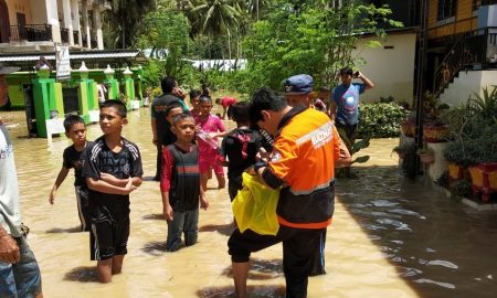Baznas Tanggap Bencana (BTB) Enrekang ikut membantu masyarakat yang menjadi korban banjir di Kecamatan Enrekang, Senin (29/4/2019). Sejak pukuk 03.30 Wita air mulai merendam...