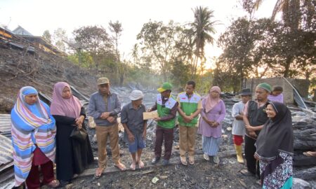 Badan Amil Zakat Nasional (BAZNAS) Enrekang menyalurkan bantuan untuk korban kebakaran atas nama Syamsul di Dusun Parandean Desa Bolang Kec. Alla pada...