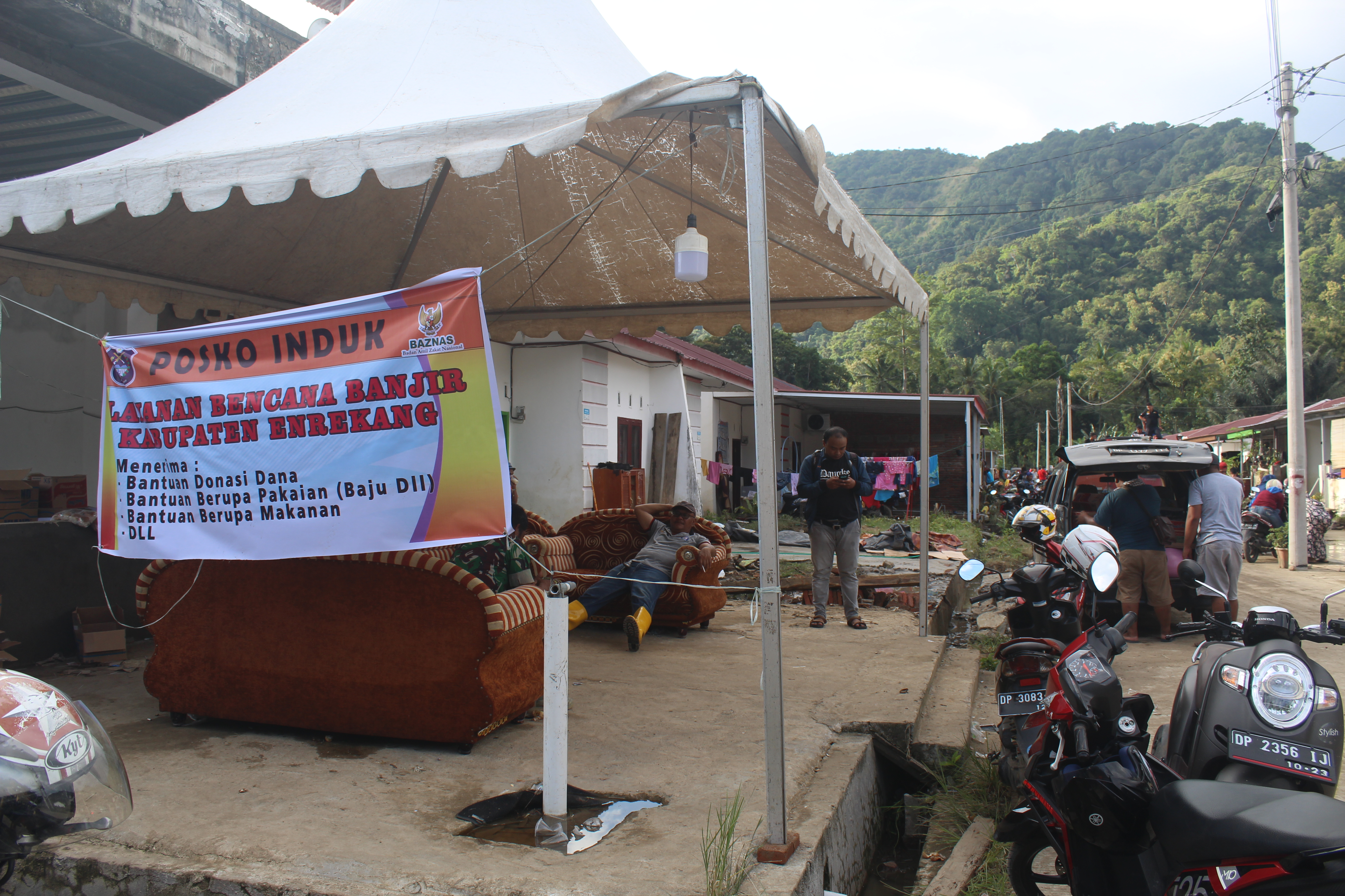 Menurut Pimpinan Baznas Enrekang, Baharuddin, posko bantuan yang didirikan khusus untuk mengkoordinir bantuan untuk korban banjir di Perumahan Kukku.