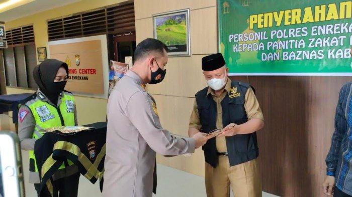 Personel Kepolisian Resor (Polres) Enrekang menyalurkan zakat fitrahnya melalui panitia Baznas Kabupaten Enrekang.